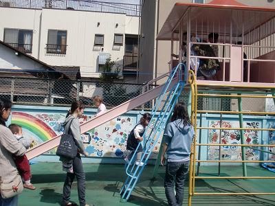 まず、幼稚園の庭や部屋で自由に遊びました。