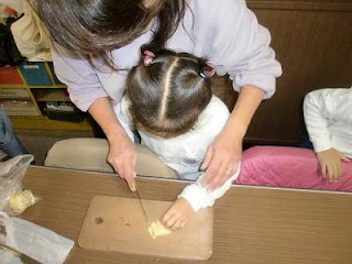 ちょうどキャベツを切ろうとしていたので、手伝ってもらうことにしました。