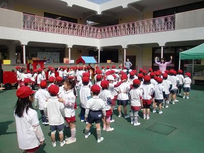 高木幼稚園では、天気の良い日に朝園庭に集まって、「おはよう体操」を行っています。