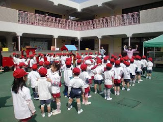 今日は、年長組とさくらぐみが体操に。(たんぽぽぐみは、体操教室の時間と重なってしまったので、今日は参加しませんでした)