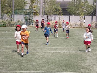 午前中は年長組が、午後は年中組が、高木学園のグラウンドに遊びに行きました。