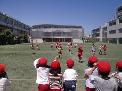 友達が走ってくるのを応援している子ども達、とっても可愛かったですよ。
