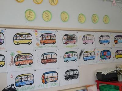 みんなよく色を塗っています。人が乗っていたり、木を描いている子もいました。