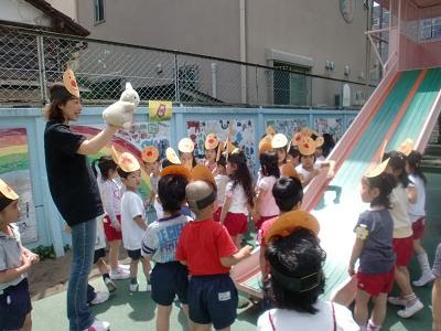 2010年5月18日2018年3月28日あんぱんまんがいっぱい!! 今日は、年中・年少が「あんぱんまん」に変身していました!!そして、幼稚園内をパトロール。悪者はいないか・お腹がすいている子はいないかを確認。そして、 いました!!「かびるんるん」です!!見つけた子ども達は、「あんぱ~んち」でやっつけていました。 また、私がお腹を空かせていると、自分の(あんぱんまんの)顔をくれる子も。 おかげで元気になりました。 しばらくは、幼稚園内をあんぱんまんが守ってくれそうです。 あんぱんまん、よろしくお願いしますね。 投稿ナビゲーション 前へ次へ