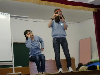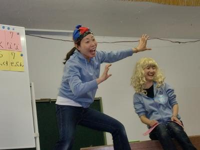 この歌を紹介するために、先生達は色々な国の人に変装。