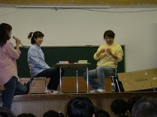 年中組は、全員で遊戯室に集まり、担任が舞台の上で、お弁当の話をしました。