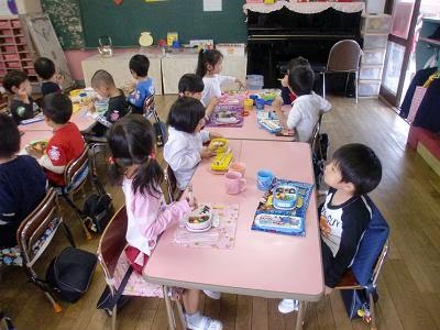 どの子も嬉しそうでした。「幼稚園でご飯食べるの、初めて」という子がいたので、「どう?おいしい?」と聞くと「すごく美味しい!!」との声。