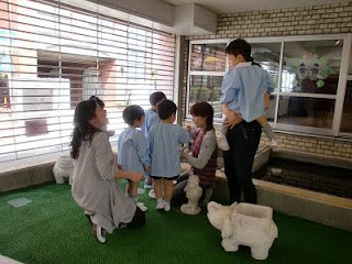 泣いている子も、先生の「カメさんにご飯あげようか」との声に、ハッと泣き止み、カメに餌をあげていました。