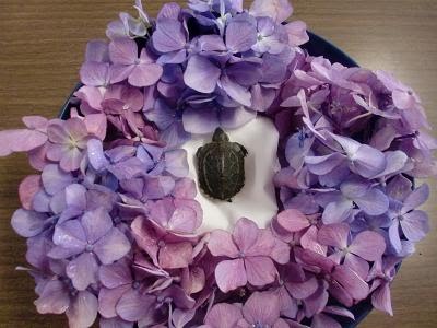 先週お伝えした、カメですが、今日になっても動かず、亡くなったようです。