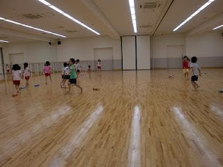 体育館の半分くらいのスペースの、サブアリーナ。裸足で沢山走って、お腹をすかせて幼稚園に戻ってきましたよ。