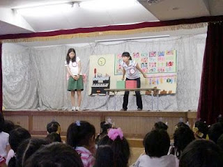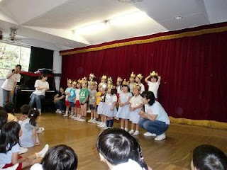 誕生日の子は、先生に呼ばれて前に出て、キラキラのかんむりをもらいました。 そのあとは、みんなが楽しみにしている「高木劇場」