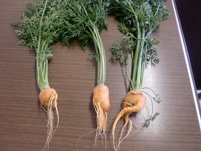 結局、3本収穫しました。先が割れていたり、ねじれていたり・・・
