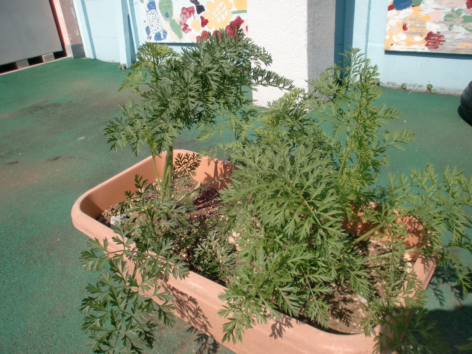 にんじんは、葉っぱがとても成長しています。土の中のにんじんの成長がとても気になる・・・・