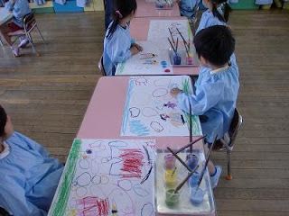 園での日々のようす 2010年6月15日2018年3月28日6月15日年長組 年長組の部屋を覗きに行くと、なにやら真剣に絵の具を作っています。 友達と一緒に色を作り、試しに描いています。 何をしていたのかと言うと、昨日クレヨンで描いていた「しゃぼん玉の絵」のしゃぼん玉に色を付けるとの事。そのための色を赤・青・黄色・白の絵の具を調合して作っていたのです。 描いていると、クレヨンのところは残り、しゃぼん玉に綺麗な色が付きました。 とても可愛いしゃぼん玉の絵が出来上がったようです。 是非見てあげてくださいね。 投稿ナビゲーション 前へ次へ 一覧へ戻る HOME 園での日々のようす 6月15日年長組