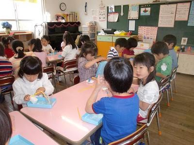 2010年6月9日2018年3月28日しゃぼん玉遊び 2日目 昨日に引き続き、年長組はしゃぼん玉遊びを行いました。昨日教えてもらった通り、しゃぼん玉液を石鹸を削って作っています。子ども達は少し慣れてきたようです。 保育参加に来て下さった、お母さん先生・お父さん先生にも手伝っていただきました。 水の量の調節も大分上手になってきました。 今日は、昨日貰ったストロー以外に、丸めた画用紙でもしゃぼん玉作りを行っていました。 色々なもので、穴の開いているものだと、しゃぼん玉が出来るようですね。年長組さん、明日も色々な実験をしてみてね。 投稿ナビゲーション 前へ次へ
