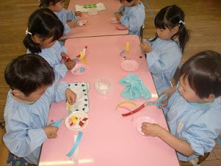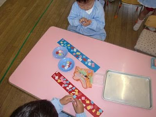園での日々のようす 2010年6月1日2018年3月28日初めてのはさみ制作~ひよこ組~ 今日は、年少組が初めてはさみに挑戦しました。先生からはさみの使い方を教えてもらい、細長い紙をチョキチョキ。ちいさい紙が沢山出来てきました。 そして、その紙を、のりで長方形の紙に貼っていきます。沢山貼っていますね。 これが、何かに変身します。 はさみは、危ない道具ですが、使い方の約束を教えてもらい、きちんと守って使えば色々なことが出来る道具です。これから、約束を守りながら、使っていきたいと思います。 投稿ナビゲーション 前へ次へ 一覧へ戻る HOME 園での日々のようす 初めてのはさみ制作~ひよこ組~