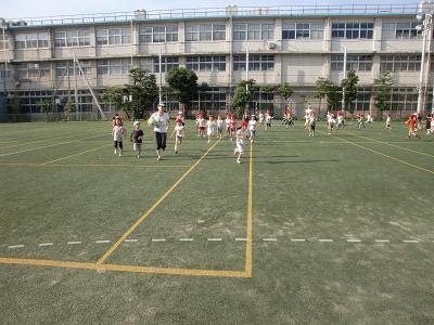 朝はほしぐみは5時半にはほとんどの子が起きていましたが、ゆきぐみは起床の6時くらいまで寝ていましたよ。 顔を洗い、身支度を整えてから、高木学園のグラウンドへ。