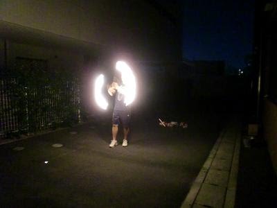 吹き上げ花火をいくつか見たあと、佐々木先生の「ファイヤーダンス」