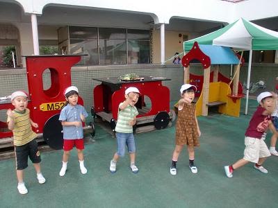 これは、盆踊りではなく、♪たいこまつりだ どんどこどん を踊っているところ。ノリノリです。