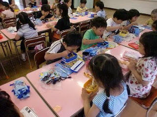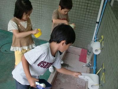 食べ終わった子は、自分のお弁当箱を綺麗にします。