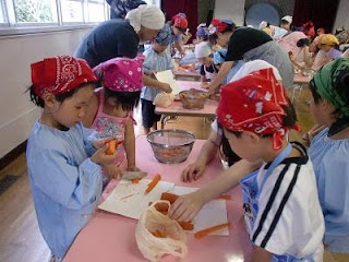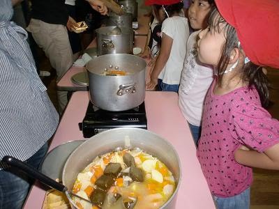 お手伝いのお母様にも来ていただき、にんじん・じゃがいも・たまねぎを切りました。