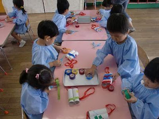 園での日々のようす 2010年7月1日2018年3月28日双眼鏡を作っています~年少~ 年少組の部屋に行くと一生懸命ビニールテープを貼っている姿。双眼鏡に模様をつけているようです。 そして、出来上がり、双眼鏡で覗いています。 何か発見したようですね。指をさしています。 子どもって、見立てて遊ぶことが得意です。この双眼鏡もトイレットペーパーの芯を二つつけただけのものですが、子ども達は、とても喜んで探検などをしていました。 この時期に楽しめるごっこ遊びを、沢山楽しんでいきたいと思っています。 投稿ナビゲーション 前へ次へ 一覧へ戻る HOME 園での日々のようす 双眼鏡を作っています~年少~