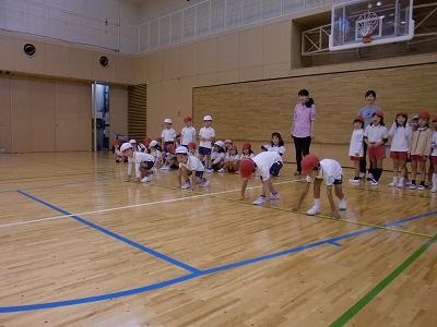 体操教室の佐々木先生と一緒にまずは柔軟体操から!(年中組です)