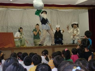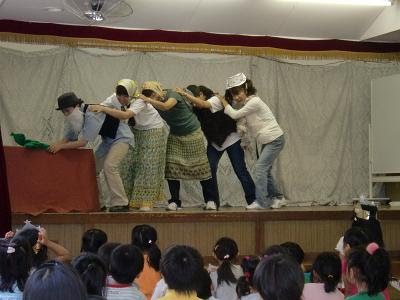 2010年9月21日2018年3月28日9月生まれのお誕生会! 9月生まれの誕生会を行いました。今月の生まれ月のお友達は少なかったですが、皆で盛大にお祝いし子ども達も嬉しそうでした。 今月の高木劇場は「おおきなかぶ」おじいさん・おばあさん・まごむすめ・犬・ねこ・ねずみでかぶを抜こうとしているところです。子ども達も声をそろえて、「うんとこしょ!どっこいしょ!!」と応援してくれました。 ついにかぶが抜けました!!子ども達は大喜び☆ その後部屋に戻ってクラスでお祝いをしました。 保護者会の方々が用意してくださったお菓子をおいしくいただきました。 投稿ナビゲーション 前へ次へ