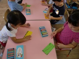 描いた動物に名前をつけたり、周りに草やりんごを描く子もいて、とてもかわいらしいものになりました。