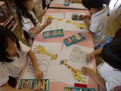 年中組は遠足で見たきりんと大好きなゾウの制作をしました。