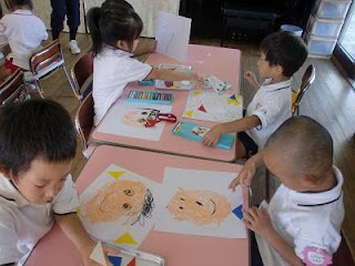 クレヨンで描いた自分の顔がそれぞれとっても似ています!
