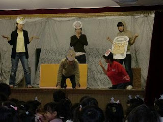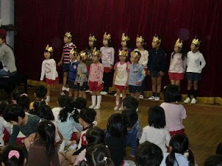 10月が誕生日の子ども達は、前に並んで、みんなから「おめでとう!」とお祝いを言ってもらい、嬉しそうにしていました。 そして、子ども達が楽しみにしている、「たかぎ劇場」。