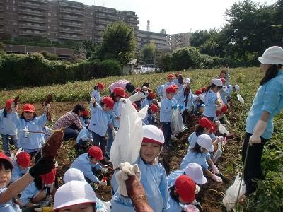 今日は、年長組がお芋掘りへ。