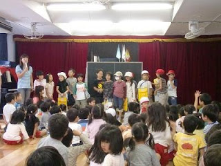 (近隣の小学校なので、卒園生も沢山いました。久しぶりに来た幼稚園、とても嬉しそうな姿もありましたよ) さて、コースの話が始まりました。
