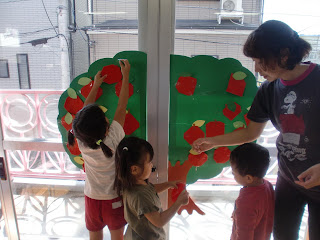 2010年10月8日2018年3月28日折り紙制作 年中組は今日折り紙制作をしていました。赤い折り紙で何を作っているかというと・・・「りんご」です。 とても簡単ですが、かわいい「りんご」が出来ました。出来たりんごは、木につけていました。今日は、セロテープを輪にしてつけていました。 食欲の秋。 見ていたら、りんごが食べたくなってきましたよ。 投稿ナビゲーション 前へ次へ