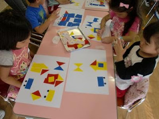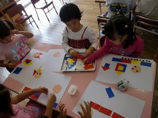 2010年10月5日2018年3月28日構成遊び~年中組~ 年中組は、構成遊びをしていました。丸や長四角、三角の折り紙を組み合わせて、色々な絵を創造していきます。 顔になったり、乗り物になったり、家になったり・・・ 一人ひとりが考えたり、友達のアイデアに感心したりしながら、楽しそうに取り組んでいました。 子ども達の発想力・創造力の素晴らしさを改めて感じました。子どもが考えたことを認めていくことを大切にし、少しずつ自信につなげていきたいなと思っています。 投稿ナビゲーション 前へ次へ