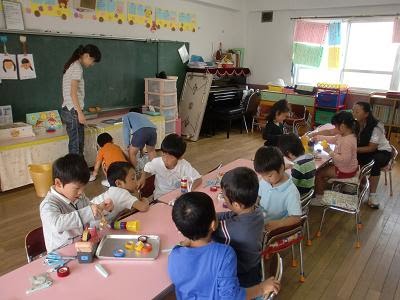 今日は、年長組はオペレッタに使う道具作りをしていました。