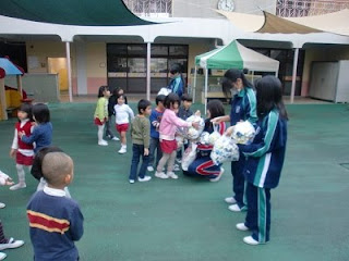最初に、自己紹介をお互いしました。ちょっと照れている高校生。 幼稚園にも、沢山キャップが集まっていたので、このときに「よろしくお願いします」と渡しました。