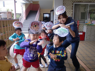 幼稚園に悪者はいないか・・・みんなで探して手裏剣でやっつけてくれていましたよ☆