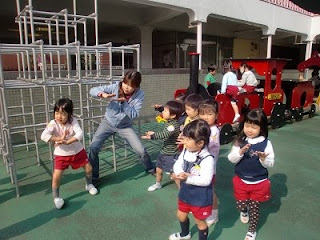 子ども達は、とても集中して聞き入っていました。(先生の話を落ち着いてしっかり聞くことが出来るようになったようなと、つくづく感じました) お話を聞き終わった後に、そのお話の中に出てきた曲に合わせて踊りました。