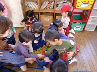 年長児が遊びの中でやっていたのを、見よう見まねで覚えてやっています。