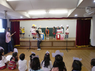 2010年11月9日2018年3月28日舞台で☆ 年長です。今日は舞台を使って劇の練習をしました。普段は上がらない舞台に立ってドキドキの子供たち!!でもとっても嬉しそう☆ もう台詞を覚えている子もいて、のりのりぶりにびっくりです!感情をこめてしゃべっている姿もありました。やる気いっぱいのこの気持ちを大切にしながら、皆で作り上げていきたいと思います。 投稿ナビゲーション 前へ次へ