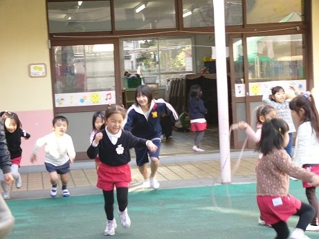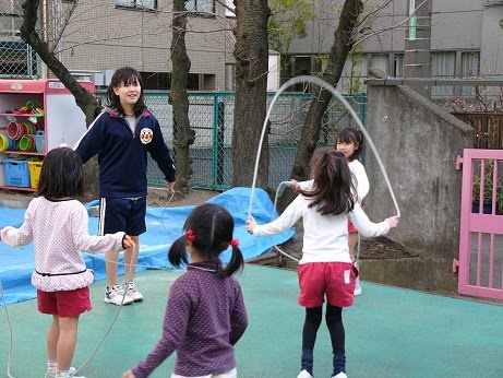 縄跳びを一緒に跳んでいました。