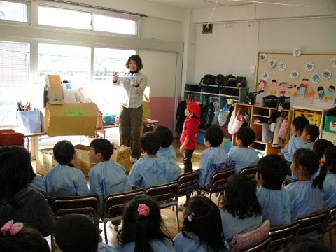 先生が箱を組み合わせると、子ども達からは「フライパン」「ダンベル」・・・・・色々な発言が聞こえました。