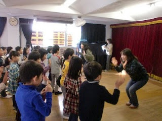 「覚えている?」と聞くと「忘れた~」という子ども達も、音楽が流れると歌詞が出てきたり踊り始めたり。 そのあとは、先生達による「魔法のくにの卒業試験」。