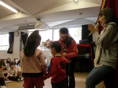 そのあと、学年ごとに、年長さんへの感謝の気持ちをこめて作った プレゼントを渡しました。