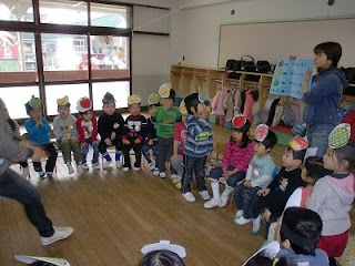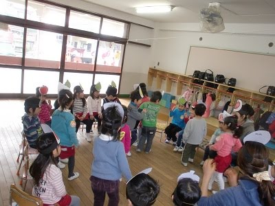 2011年3月8日2018年3月28日2クラス一緒にフルーツバスケット 年少のクラスでは、1くみ2くみが集まり、先日教えてもらったフルーツバスケットのルール説明を聞いていました。先生:「自分の果物の名前を言われたら、」: こども「お引越しするんだよね」ルールがとても良くわかっています。 そして、早速スタートです。真ん中にいる友達の言う果物の名前を聞き、自分の果物だったら、一生懸命移動します。 2クラス一緒に楽しんでいました。 ルールを守って、楽しく遊べるようになった、ひよこぐみの子ども達。 この一年での成長の素晴らしさを、改めて感じました。 投稿ナビゲーション 前へ次へ