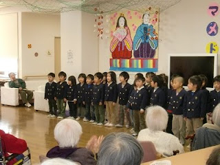 そして、3月3日ということで、おじいちゃん・おばあちゃんの前で♪うれしいひなまつり を歌いました。