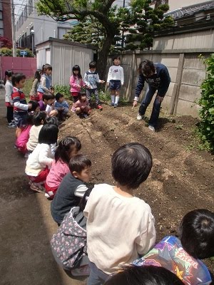 昨年度末に裏の畑にじゃがいもの種芋を年長組(当時の年中組)が植えました。