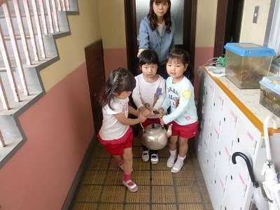 2011年5月31日2018年3月28日お当番活動 年中組さんのお当番活動の様子です。クラスで3人のお当番さんが、お弁当の時に使うやかん(中はお茶です)を職員室に取りに来たところです。 全員分のお茶が入っているので、重たいけれど、責任重大です。階段も大変だけれど、友達と力を合わせて運びます。 そのほか、部屋で先生のお手伝いをするお当番さん。 子ども達は、お当番になりたくて、なれるのをとても楽しみにしています。 1日3人なので、お当番になるまでに時間がかかるかもしれないけれど、楽しみに待っていてね。 投稿ナビゲーション 前へ次へ
